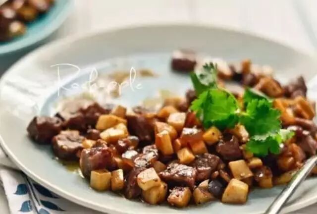 1. 将牛肉洗净擦干水分,切成大小一致的小方块,加入盐,生粉,1匙食用油,抓匀后腌制20-30分钟。