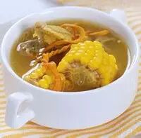 排骨500g、玉米1根、干虫草花10g、枸杞30粒、姜几片(去皮)、盐适量。