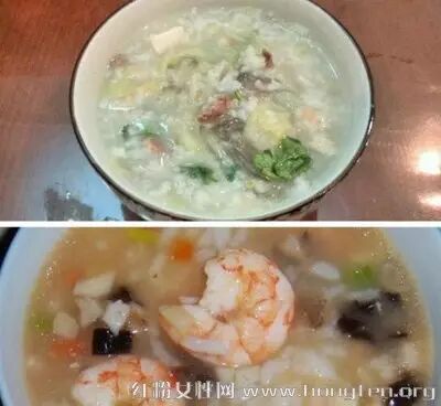 3、一桶米,6碗水(吃饭的小碗),泡20分钟,然后就按照一般白粥的程序,先把米烧开,然后把杏鲍菇和虾肉放入转小火焖烧20分钟,然后把荷兰豆放入闷1,2分钟(防止荷兰豆变黄)就可以了。