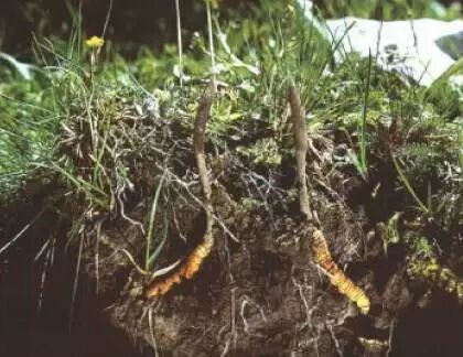 看到这儿,很多人都会惊讶,冬虫夏草和蘑菇还有关系?一直有人都分辨不清它是虫还是草,从来没有往蘑菇那个领域去想过,冬虫夏草是由虫草菌的真菌孢子成熟散落后萌发成菌丝钻到蝠蛾的幼虫身体内,吸取幼虫体内的营养而成的。临床上冬虫夏草对肺虚久咳,气喘,肺结核咯血,盗汗,肾虚腰膝酸痛,阳痿遗精,神经衰弱及化疗、放疗后的红细胞下降都有疗效。